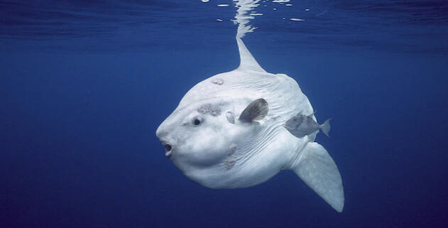 Mola mola can be found in temperate and tropical oceans. They can reach up to around 14 feet in length vertically and 10 feet horizontally, weighing up to 5,000 pounds (around 2268 kilograms). They are considered vulnerable species.